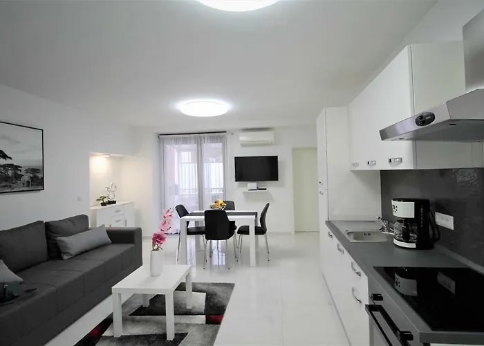 Ein Wasserkocher, ein Kühlschrank und ein Herd sind zur Selbstverpflegung vorhanden. Hier werden auch Kücheneinrichtungen, darunter eine Minibar angeboten, um den Gästen einen angenehmen Aufenthalt zu ermöglichen. Das Restaurant Konoba aba serviert Gerichte der kroatischen Küche und ist lediglich 5 Gehminuten von hier entfernt.